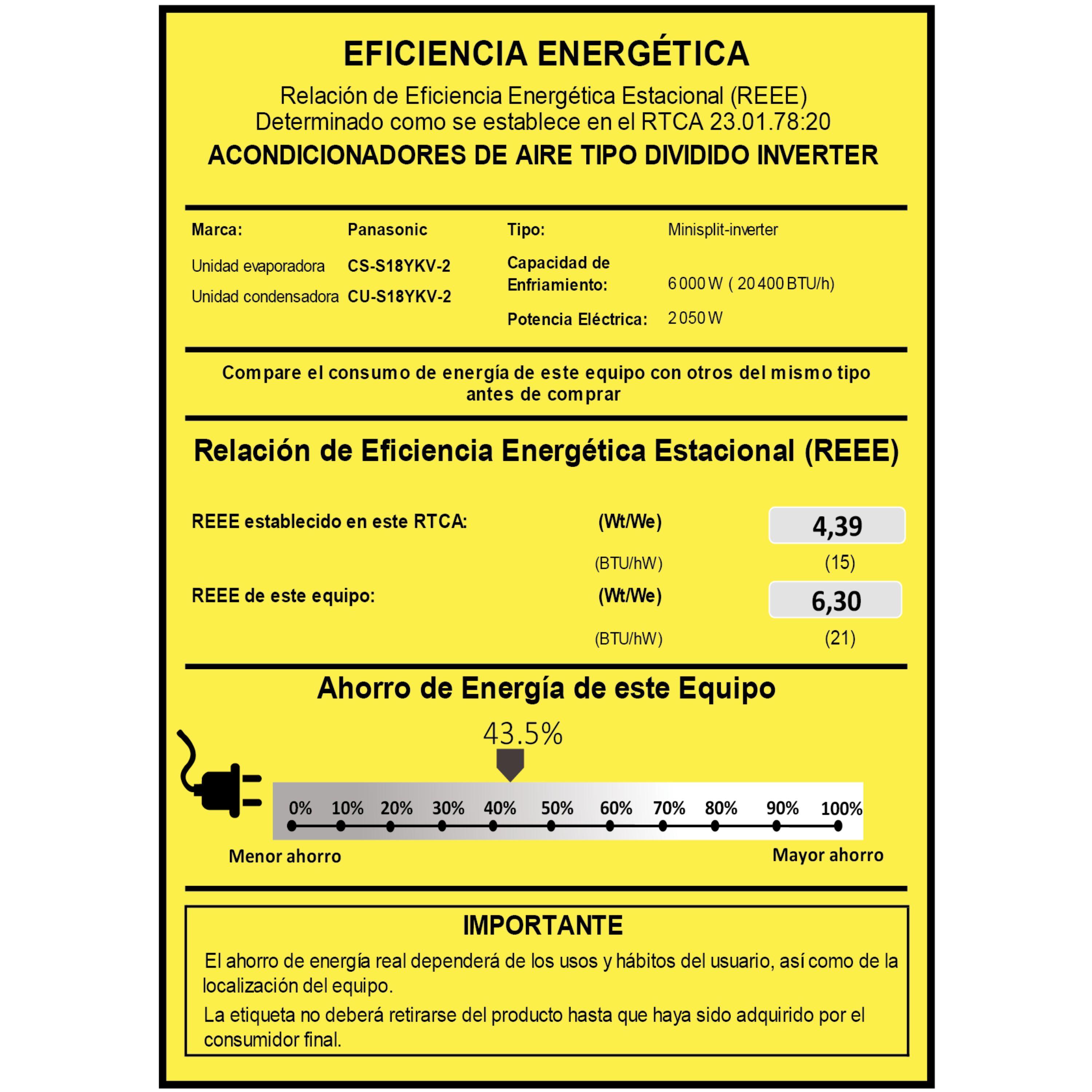 | Nivel de eficiencia (SEER) | 21.5 |
